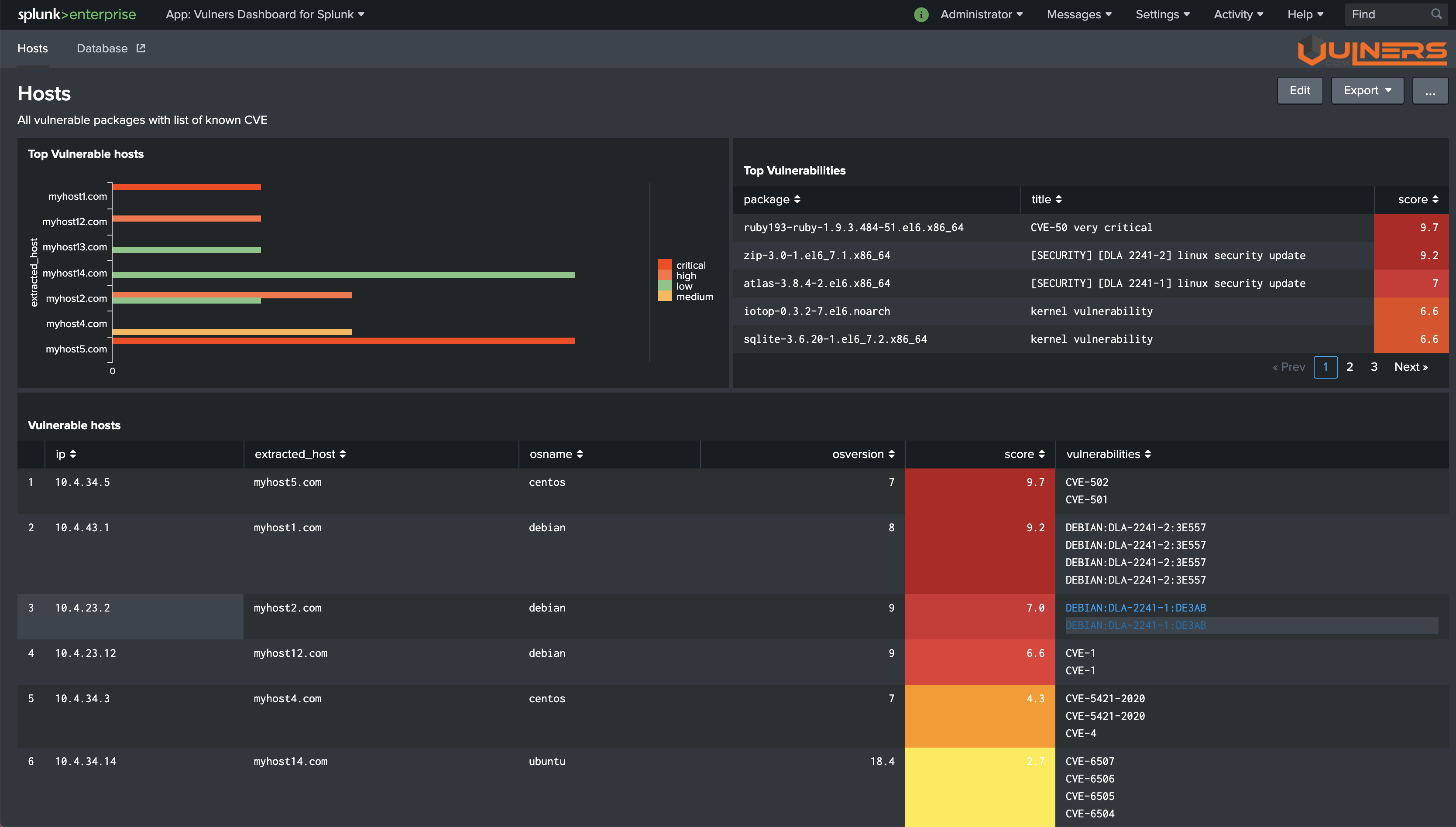 The Vulners Splunk Plugin converts Splunk into a potent platform for vulnerability assessment and security scanning by utilizing the comprehensive Vulners.com vulnerability database.